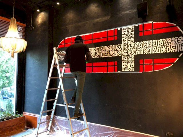 В ресторане «Огонек» в Екатеринбурге на стене появилась копия нашумевшего "Супрематического креста" – арт-объекта работы уличного художника Покраса Лампаса.