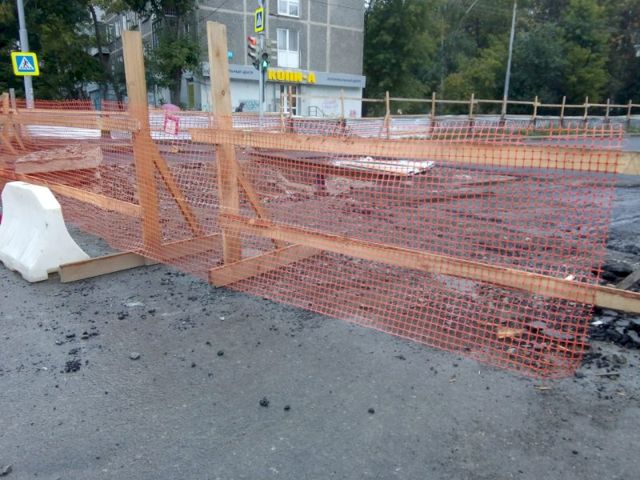 Неизвестные сломали ограждение, которое ремонтники установили для блокирования проезда машин. Поэтому автомобилисты едут в центр, полагая, что движение открыто. Однако на самом деле ремонт еще не закончен, и водители понимают это, когда доезжают до окончания моста, где до сих пор все разрыто.