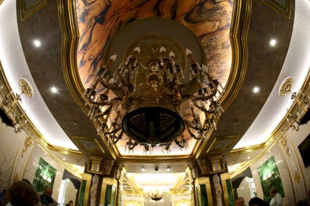 Журналисты выбрали комплиментарный тон, отметив, что вместо серых коридоров и классов в школе появились мраморные полы, позолоченные колонны и люстры.