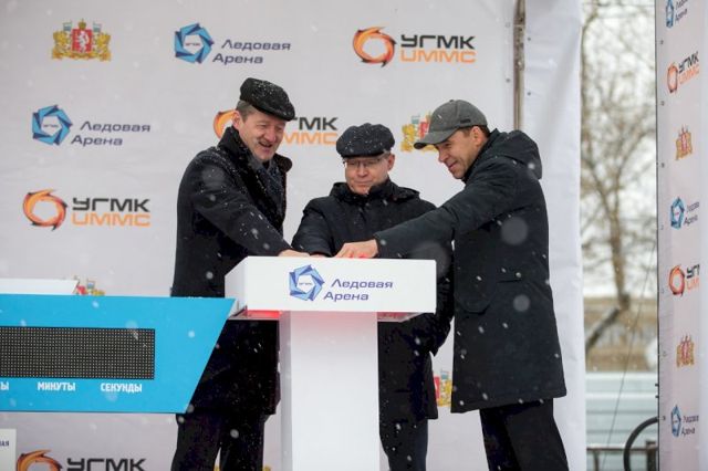 На символическую красную кнопку, запускающую таймер, общими усилиями нажали генеральный директор Уральской горно-металлургической компании Андрей Козицын, министр строительства и ЖКХ РФ Владимир Якушев и губернатор Свердловской области Евгений Куйвашев.