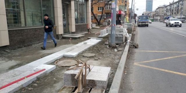 Напомним, подрядчик завершит работу только к 3 декабря, хотя изначально приемку работ намечали на ноябрь. Рабочие укладывают бруски гранита в лужи и снег, но глава города Александр Высокинский утверждает, что технология работ не нарушена, укладка допускается и в минусовые температуры.