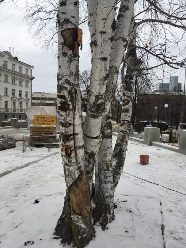 По информации сообщества, компенсацию за прежние повреждения подрядчик уже заплатил, пострадавшие стволы варом обработал, уделив, правда, внимание только крупным «ранам».