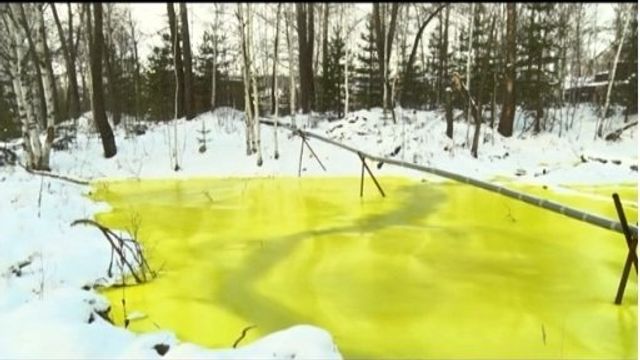 В микрорайоне Магнитка в Первоуральске образовалось желтое озеро. Впечатляющие видеокадры с места событий обнародовала местная телекомпания «Евразия».