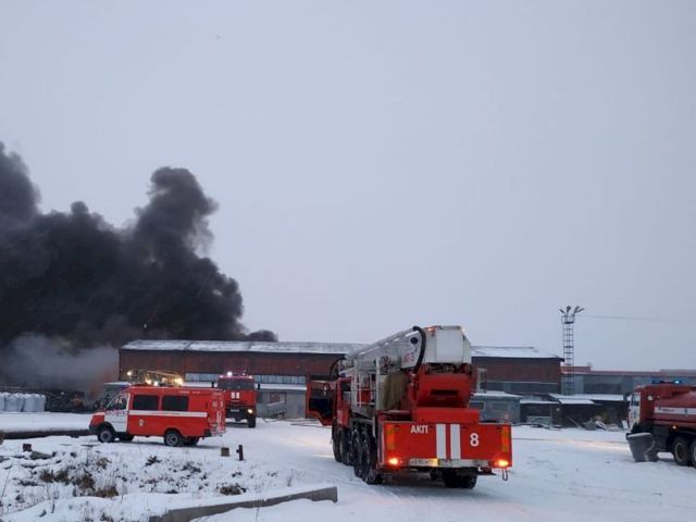 Общая площадь возгорания составляет 500 кв. м. Тушение пожара осложняется большой пожарной загрузкой и удаленностью источников воды. От ближайшей реки для обеспечения огнетушащими веществами протянута магистральная линия протяженностью более 100 м. В тушении пожара задействованы 45 человек, 15 единиц пожарно-спасательной техники. В зонах сильного задымления работают два звена газодымозащитной службы.