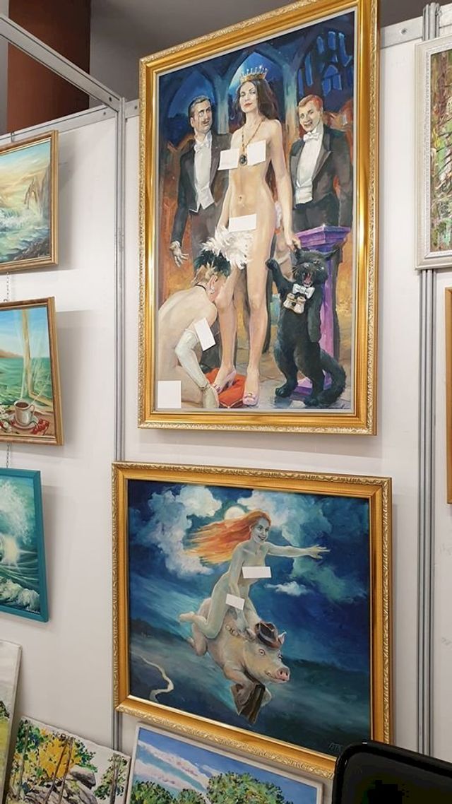 Несколько работ художников на выставке в галерее «Урал-Постер» в Екатеринбурге подверглись цензуре. Картины, на которых присутствовала обнаженная натура, частично заклеили стикерами, скотчем и завесили тканью.