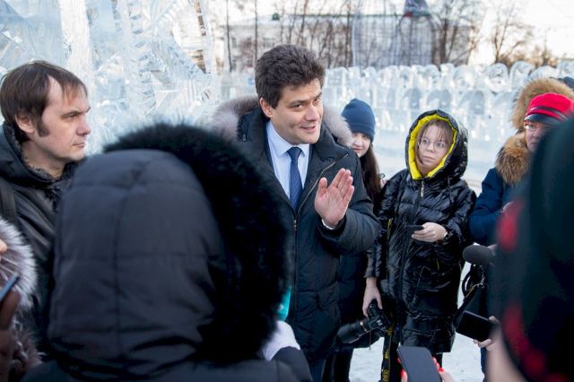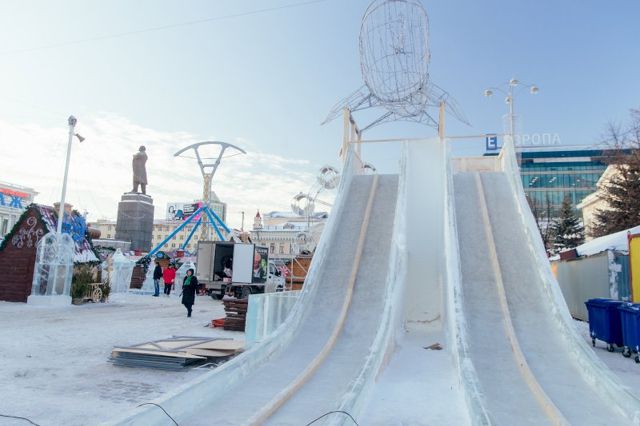 Сегодня мэр Екатеринбурга Александр Высокинский провел техническую приемку ледового городка. Главная праздничная площадка города официально откроется для посетителей завтра, 27 декабря. Мэр пообещал журналистам лично протестировать качество самой большой горки.