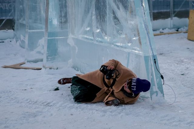 В основе площадки - ледовые скульптуры, ледяные лабиринты и горки. Последних в этом году шесть: две большие, две средние и две совсем маленькие.