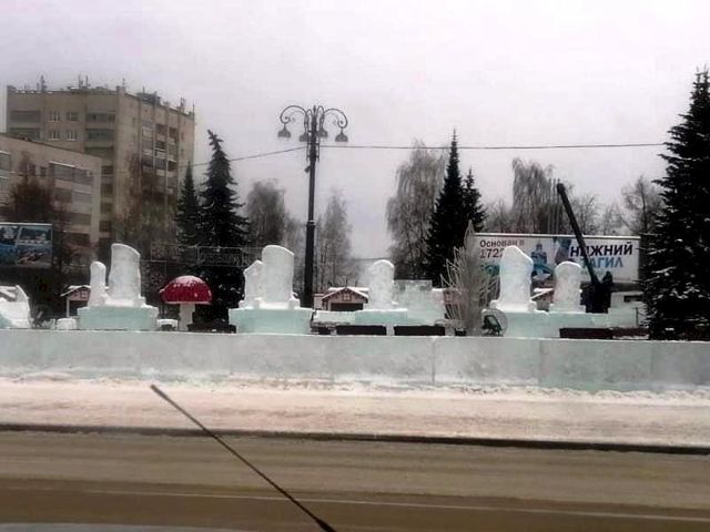 В Нижнем Тагиле местные жители шокированы оформлением главного городского ледового городка, который украшен фигурами, похожими на могильные плиты.