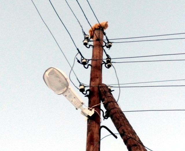 В Краснотурьинске спасли кота, который три дня просидел на фонарном столбе. Изначально тревогу забили зоозащитники, а на помощь животному пришли местные энергетики.