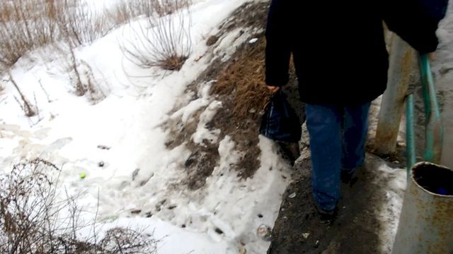 Ирбитский активист Алексей Кононов снял затопленный тротуар, который люди вынуждены обходить с риском для жизни над обрывом.