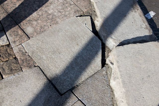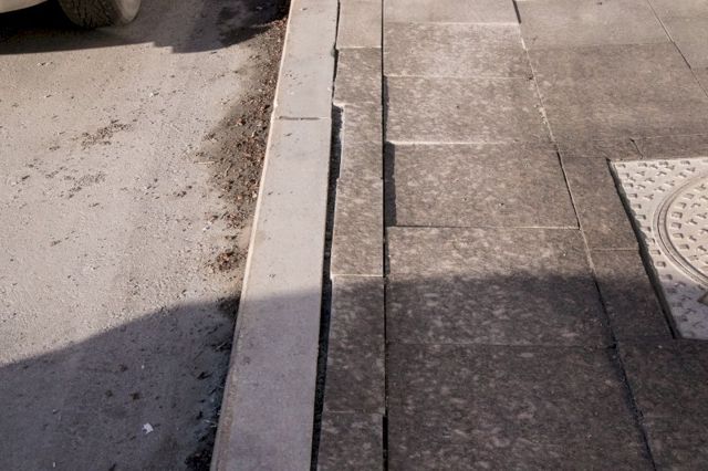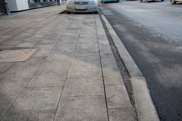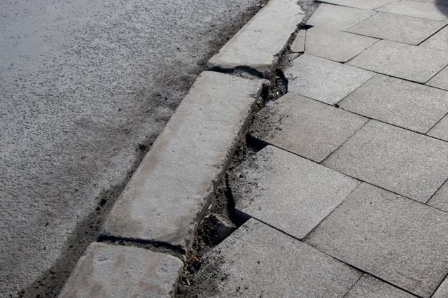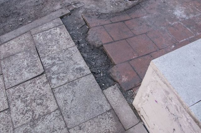 Швы шириной в полсантиметра-сантиметр, срезанные дорожные знаки, перепады высот. Проще говоря, плитка торчит, разъезжается и на новый тротуар не похожа.