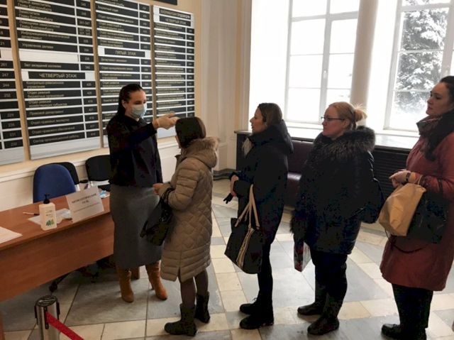 В администрации Екатеринбурга 17 марта введен особый пропускной режим. Попасть в здание можно только после измерения температуры и обработки рук антисептическим гелем. Сотрудники и охранники, встречающие посетителей, постоянно меняются.