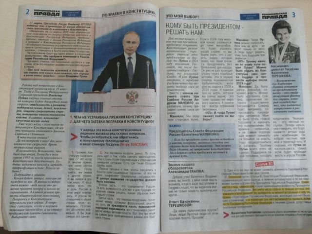 В Екатеринбурге начали распространять специальный изданный десятимиллионным тиражом выпуск газеты «Комсомольская правда». Продукт «Поправки в Конституцию – это мой выбор!» полностью посвящен ответам на вопросы о новой редакции Конституции, скорректировать которую предложил президент Владимир Путин.