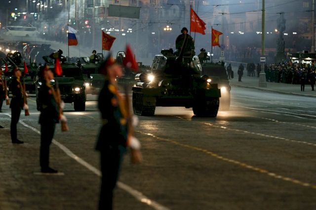 «Репетиции движения техники также запланированы на 16, 21, 23 апреля и другие дни. Последняя тренировка войск Екатеринбургского гарнизона перед парадом в ознаменование Великой Победы на Площади 1905 года пройдет 7 мая 2020 года», - говорится в сообщении мэрии.