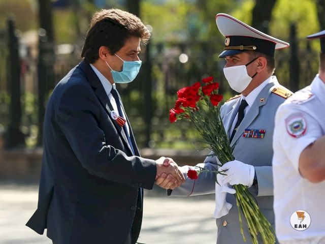 Отметим, чуть ранее аналогичная церемония у памятника Жукову прошла с участием полпреда президента Николая Цуканова. "Разведение" двух делегаций чиновники объяснили желанием не создавать столпотворение в центре города в период пандемии коронавируса.
