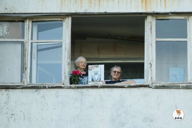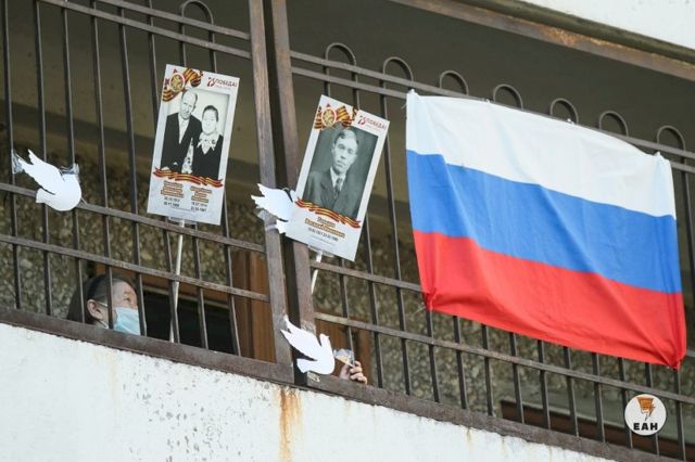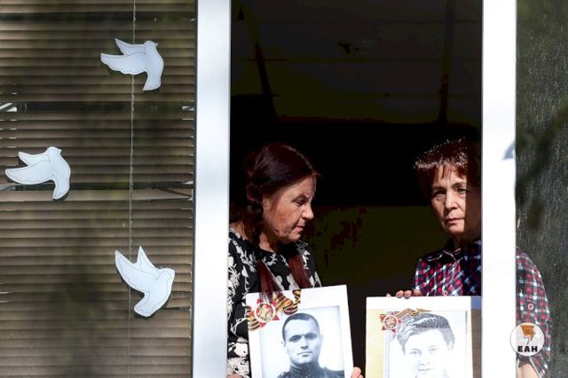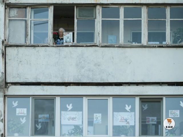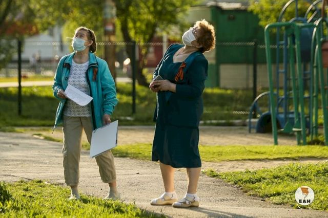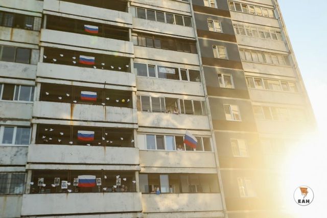 Жители многоэтажного дома на Эльмаше устроили полноценный домашний «Бессмертный полк». Люди в назначенное время вышли на балконы с портретами героических предков под песнь «День Победы».