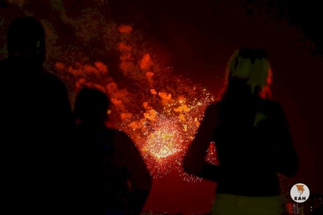 Вечером состоялся традиционный праздничный салют. Власти до последнего момента скрывали место проведения мероприятия, - ЦПКиО, - но жители города все равно сумели собраться толпой, чтобы полюбоваться фейерверками.