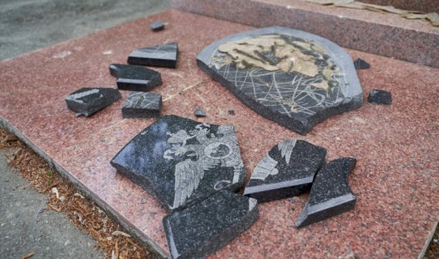 В екатеринбургском ЦПКиО неизвестные вандалы разбили военные памятники, установленные на Аллее героев предыдущим директором парка, генералом Романом Шадриным. Фотография одного из поврежденных мемориалов появилась на сайте информагентства «Уральский меридиан».