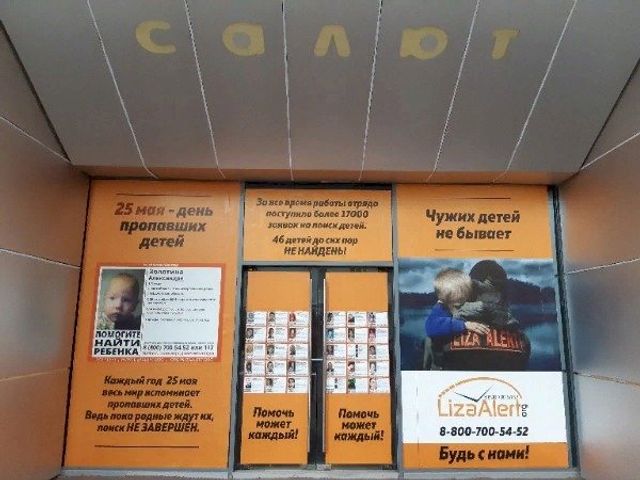 На входной группе бывшего кинотеатра «Салют» в Екатеринбурге появился информационный стенд поискового отряда «Лиза Алерт». Здесь размещены фотографии пропавших в Свердловской области детей, поисками которых занимался отряд. К сожалению, 46 из них так и не найдены.