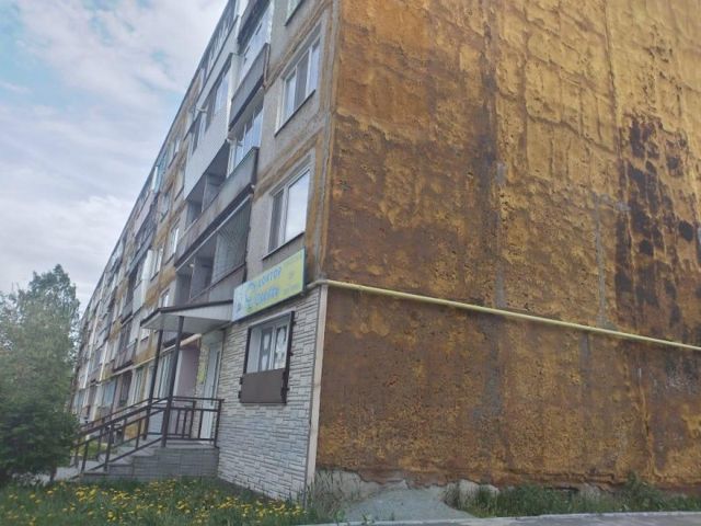 Рыжей пеной фасады серых зданий разбиты на клетки, а с торца запенены не только швы, но и вся поверхность бетонных плит. Фото таких домов прислал в редакцию ЕАН турист, посетивший Невьянск.