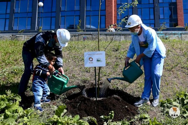 Первое дерево лично высадил руководитель девелоперских проектов «УГМК Застройщик» Евгений Мордовин, а помогали ему его полуторагодовалый сын Игорь и директор ландшафтной компании «Green Park» Юлия Сорокина.