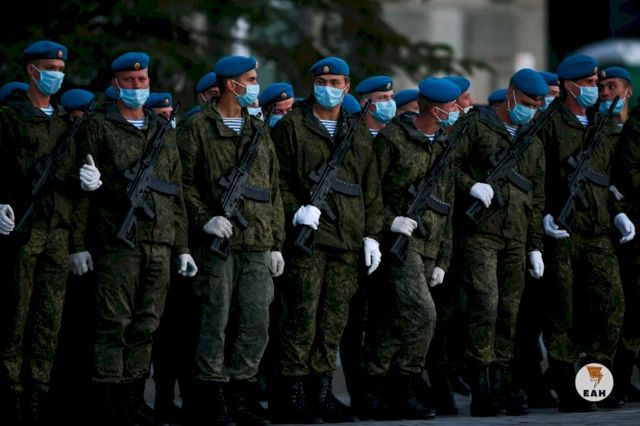 Кроме того, в парадном строю прошли расчеты управления штаба и авиационного объединения Центрального военного округа, коробки военнослужащих мотострелкового, железнодорожного соединений, и единственный парадный расчет военной полиции за Уралом.