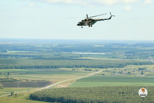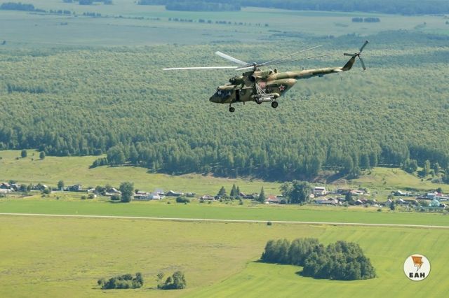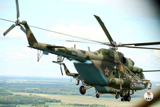 Первым летит тяжелый транспортный вертолет Ми-26, за ним следует звено из четырех вертолетов Ми-24, потом звено Ми-8. На этом вертолетная часть завершается. Затем в небе появляются военно-транспортные самолеты, которые используются для транспортировки грузов и людей и которые не участвуют в непосредственном бою. Это небольшие L-410, Ан-26, Ан-12 – все они винтовые и Ту-134-УБЛ – уже с турбореактивными двигателями. Затем пойдет боевая авиация: пара Су-24, звено Су-34 и звено самых быстрых МиГ-31.