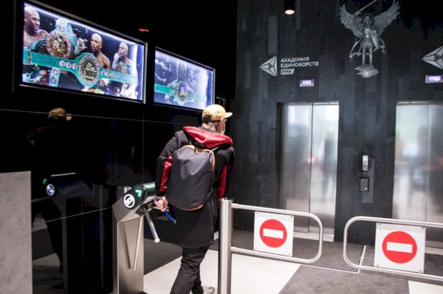 У всех гостей академии на входе проверяют температуру и обрабатывают антисептиком руки. Если нет маски, ее выдают. Снять ее можно будет только в зале. В тренажерке Академии единоборств пустынно. По нормам безопасности посетители могут тренироваться из расчета не больше одного человека на 4 кв. м.