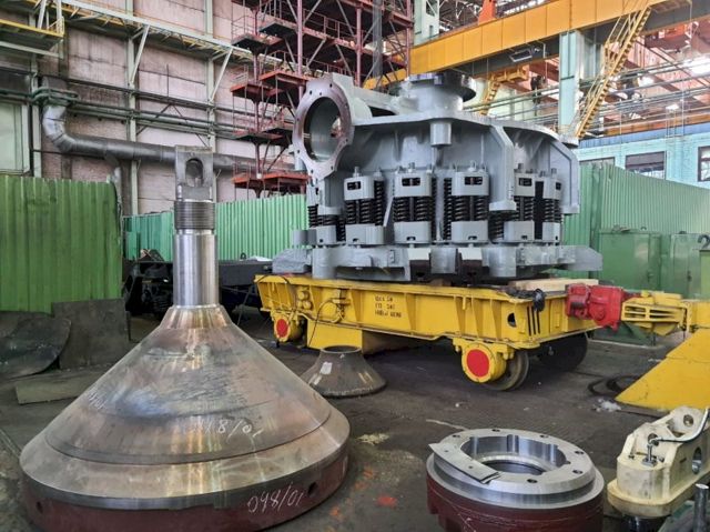 Конусные дробилки, которые будут установлены на второй и третьей стадии дробильного передела (КСД-2200Гр-Д1М и КМД-2200Т1-Д1М), Уралмашзавод уже отправил в адрес заказчика, до 15 июля предприятие планирует завершить отгрузку щековой дробилки ЩДП-900х1200У производительностью 250 т/ч, предназначенной для крупного дробления руды. Остальное оборудование (шаровые мельницы МШЦ-4000х5500 и грохоты), согласно условиям контракта, будет доставлено на рудник до конца третьего квартала. В комплект поставки также входит система АСУ всего комплекса и ЗИП. Вся дробильная техника оснащена механизмом гидравлического прижатия щели.