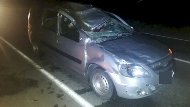 На автодороге Екатеринбург - Реж - Алапаевск автомобиль Lada Largus сбил лося. ДТП произошло накануне в 23:30, сообщает пресс-служба регионального УГИБДД.