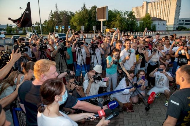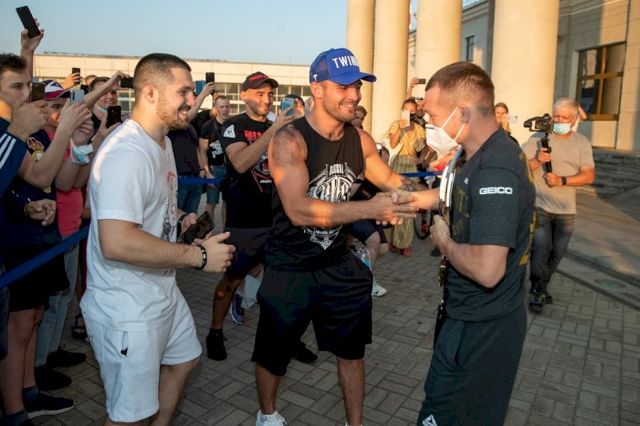 Боец сфотографировался с поклонниками, поприветствовал друзей и пообщался с прибывшими на место журналистами. Первый же вопрос касался эмоций после победного поединка.