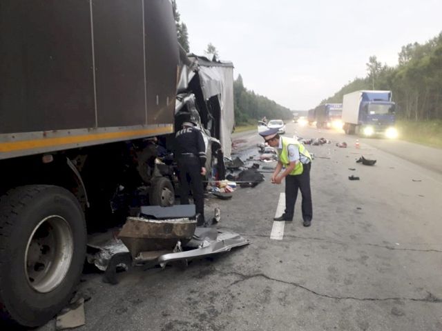 На трассе «Пермь-Екатеринбург» накануне вечером столкнулись три грузовика.