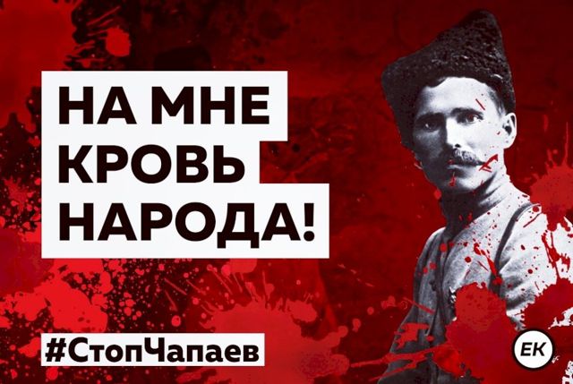 «В Екатеринбурге хотят поставить памятник участнику геноцида казаков Чапаеву. Мы выступаем против. По сети запущен хештег #СтопЧапаев. Подписчиков из Екатеринбурга призываем выйти к зданию Свердловского областного военного комиссариата (где расположится композиция, – прим. ЕАН), распечатав один из представленных плакатов, и привлечь внимание к проблеме одиночным пикетом. Конечно, все в рамках закона», - сказано в обращении.
