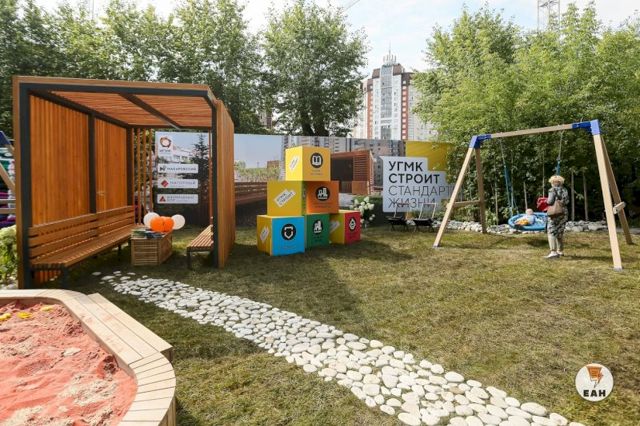 Еще пять садов представили партнеры фестиваля. Например, компания «УГМК Застройщик» воссоздала часть дворовой территории по подобию жилых проектов компании: «Макаровский», «Нагорный», района «Изумрудный бор» и Iset Tower. На участке, как и во дворах жилых проектов, размещены качели, беседка, шезлонги, большая песочница из натурального дерева, галька, газон и гортензии, которые сейчас очень красиво цветут, и фото получаются шикарные.