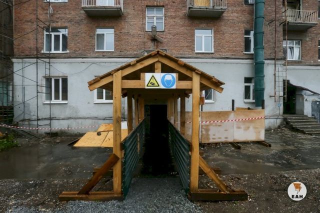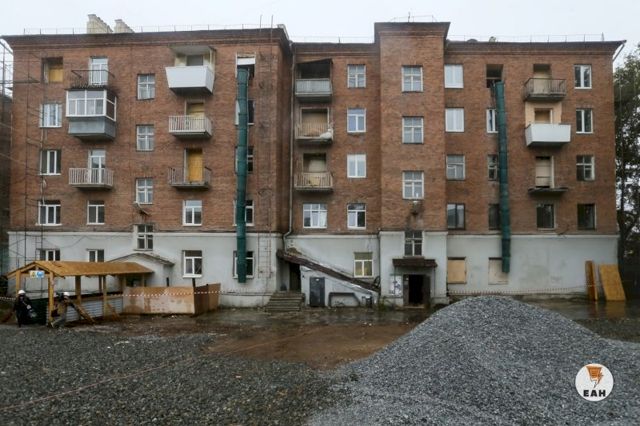 Сегодня в Екатеринбурге рабочие приступили к сносу расселенной пятиэтажки, на месте которой будет построен новый корпус филармонии по эксклюзивному проекту бюро Захи Хадид. Так как рядом с пятиэтажкой стоят другие здания, бригада рабочих из 40 человек собирается за пару месяцев вручную разобрать все перекрытия, а затем и внешние стены.