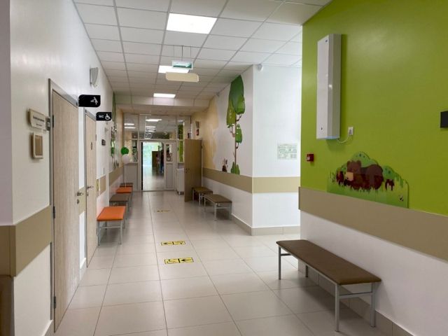 В целях совершенствования оказания медицинской помощи детям и повышения ее доступности в детской поликлинике предусмотрены такие подразделения, как фильтр–боксы для оказания неотложной медицинской помощи, педиатрическое отделение на 5,5 участков, консультативно-диагностическое отделение, отделение восстановительного лечения, включающее помещение для спелеотерапии (лечение солевыми аэрозолями), кабинеты электро-, свето-, тепло-, грязелечения и массажа.