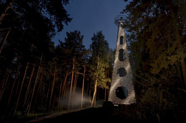 Участники фестиваля «Стенограффия» преобразовали бетонную триангуляционную вышку в Шарташском лесопарке в арт-объект «Радио». Об этом на своей странице в Facebook написал директор лесопарка Артур Зиганшин.