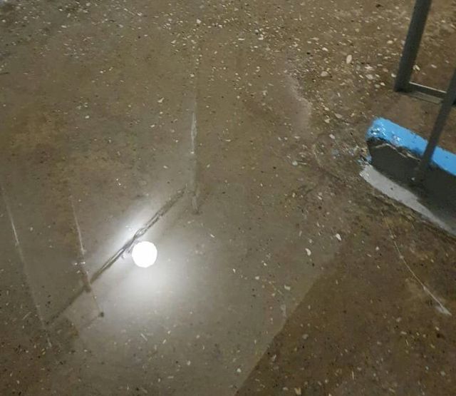 На фото и видео видно, что вода бежит по стенам с крыши, на лестничной клетке образовалась большая лужа.