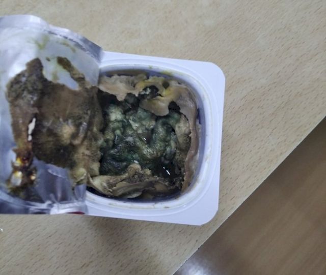 «Это произошло во время обеда, когда кормили седьмые-восьмые классы. Я отдал испорченный йогург учительнице, мне без разговоров его заменили», — рассказал ЕАН школьник, сделавший снимок.