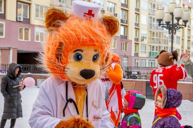 Так, вместе с детьми на улице играли самые известные ростовые куклы Екатеринбурга: символ ХК «Автомобилист» лось Автик, лис Майк от баскетбольного клуба УГМК, рысь Рысик — представитель клуба настольного тенниса УГМК, Мегадеша — символ стоматологической клиники «Мегадента», кот Филармоник из детской филармонии, самая известная Баба-яга Урала — Галамартовна, а также Кенгуру, Полосатый Кот из одноименной детской изостудии, профессор Гуня из Гуманитарного университета. А всех гостей праздника накормил вкусными булочками «Смак». Кроме того, все, кто пришел на прием в этот день, получили в подарок от поликлиники — гематоген и воздушные шары.