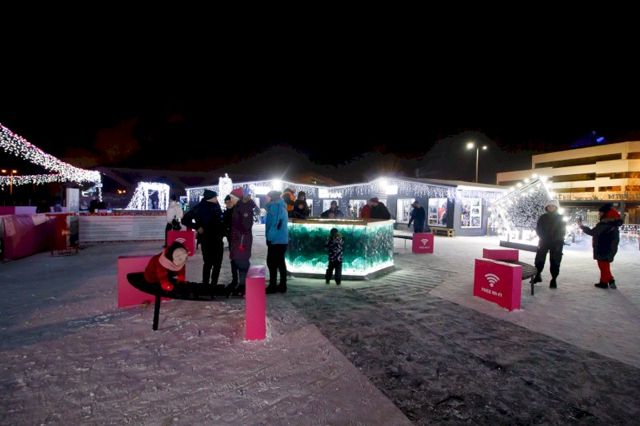 Отметим, что в этом году зона проката была увеличена в два раза, для того чтобы не было очередей, а сам каток его создатели оформили по-новогоднему ярко.