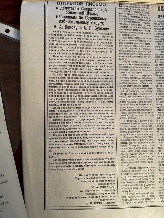 - Я тогда принес толстый том переписки жителей Чкаловского района с администрацией. У них сломалась скважина, они просили администрацию ее отремонтировать и аккуратно подшивали ответы. Но даже такой пустяковый вопрос, несмотря на всю переписку, решен не был. Обратной связи с населением уже тогда не было.