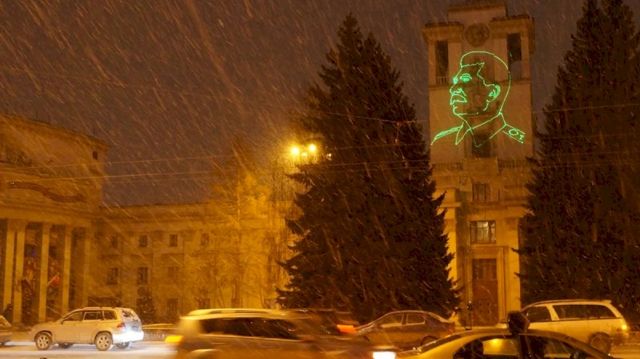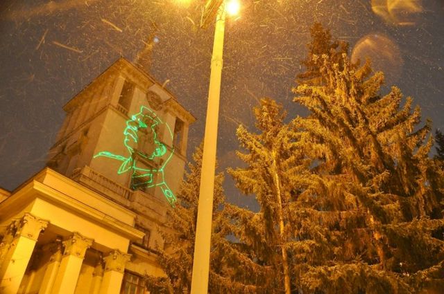 Свердловские представители партии писателя Захара Прилепина «За правду» отметили день рождения Иосифа Сталина 21 декабря, создав световой портрет Иосифа Сталина на фасаде окружного Дома офицеров.