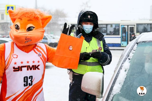Талисманы баскетбольного клуба УГМК — Лис Майк и Лиса Маша провели праздничный рейд по дорогам Екатеринбурга в сопровождении экипажа ДПС.