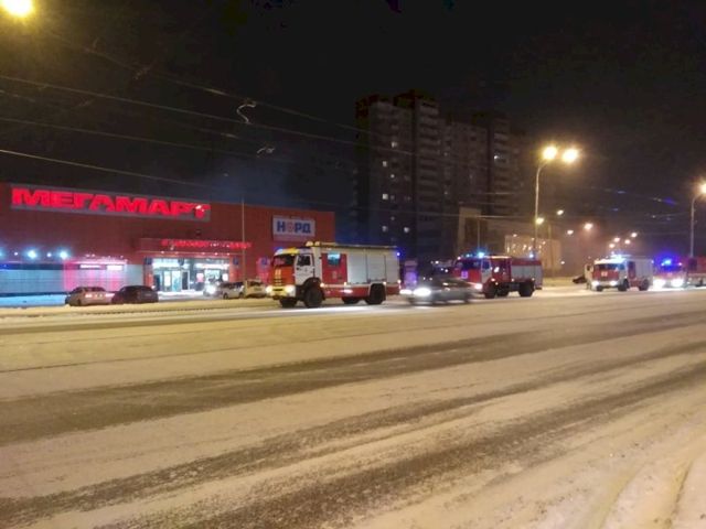 Ночью в Екатеринбурге произошел пожар в магазине «Мегамарт» на улице Высоцкого, 12. Возгорание произошло в пристрое к магазину в зоне разгрузки.