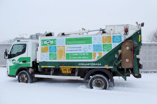 В новом екатеринбургском микрорайоне Солнечный сегодня работал специализированный мусоровоз.