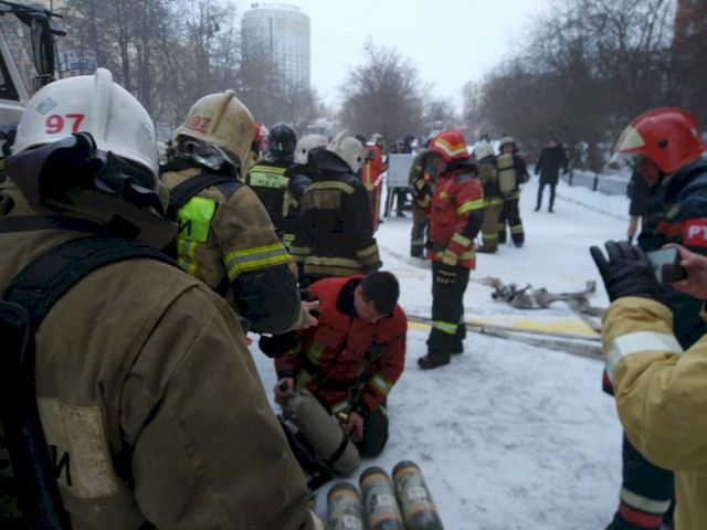 Тем временем спасатели пытаются взломать щитовые: «Горят щитовые. Железные двери щитовых закрыты на замок, двери раскалена докрасна. На 17 и 18 этажах пытаемся взломать. Стена в один кирпич. Легче стену сломать, чем дверь открывать», – сообщил спасатель.