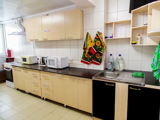 Кухню оборудовали электроплитой с вытяжкой, установили две микроволновые печи, три холодильника, электрические чайники. В каждой комнате установлена новая мебель: столы, стулья, пуфики, двуспальные кровати, шкафы и тумбы. Кроме этого, имеются комната отдыха и детская комната.