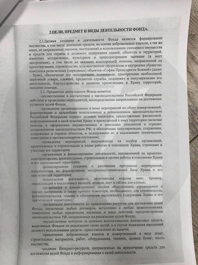 «В конце 2019 года был создан Фонд святой Софии с целью оформления права собственности на Епархию и строительство большого храма. Туда входили, например, Сергей Чепиков (депутат, олимпийский чемпион по биатлону). Так называемый налог уплачивался благотворителями на расчетный счёт, в других случаях люди приходили и вносили деньги в кассу Епархии или не вносили, а тратили на содержание монастыря и его строительство. Весь оборот производился наличными деньгами», – говорит адвокат.