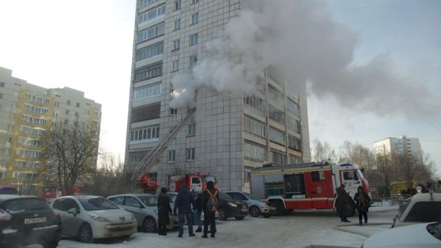 В Екатеринбурге пожарные борются с огнем в 12-этажном доме на улице Ангарской, 52/2.
